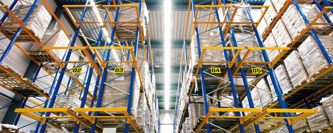 - 50,000 pallet positions (PP) per square meter in high-bay or block storage at ambient temperature