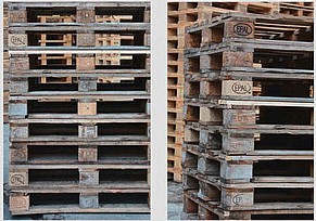 Je Seite mindestens eine EPAL-Kennzeichnung lesbar. Holzabsplitterungen zulässig. Kann repariert worden sein. Reparaturkennzeichnungs-Nagel als Nachweis für lizenzierte Reparatur.